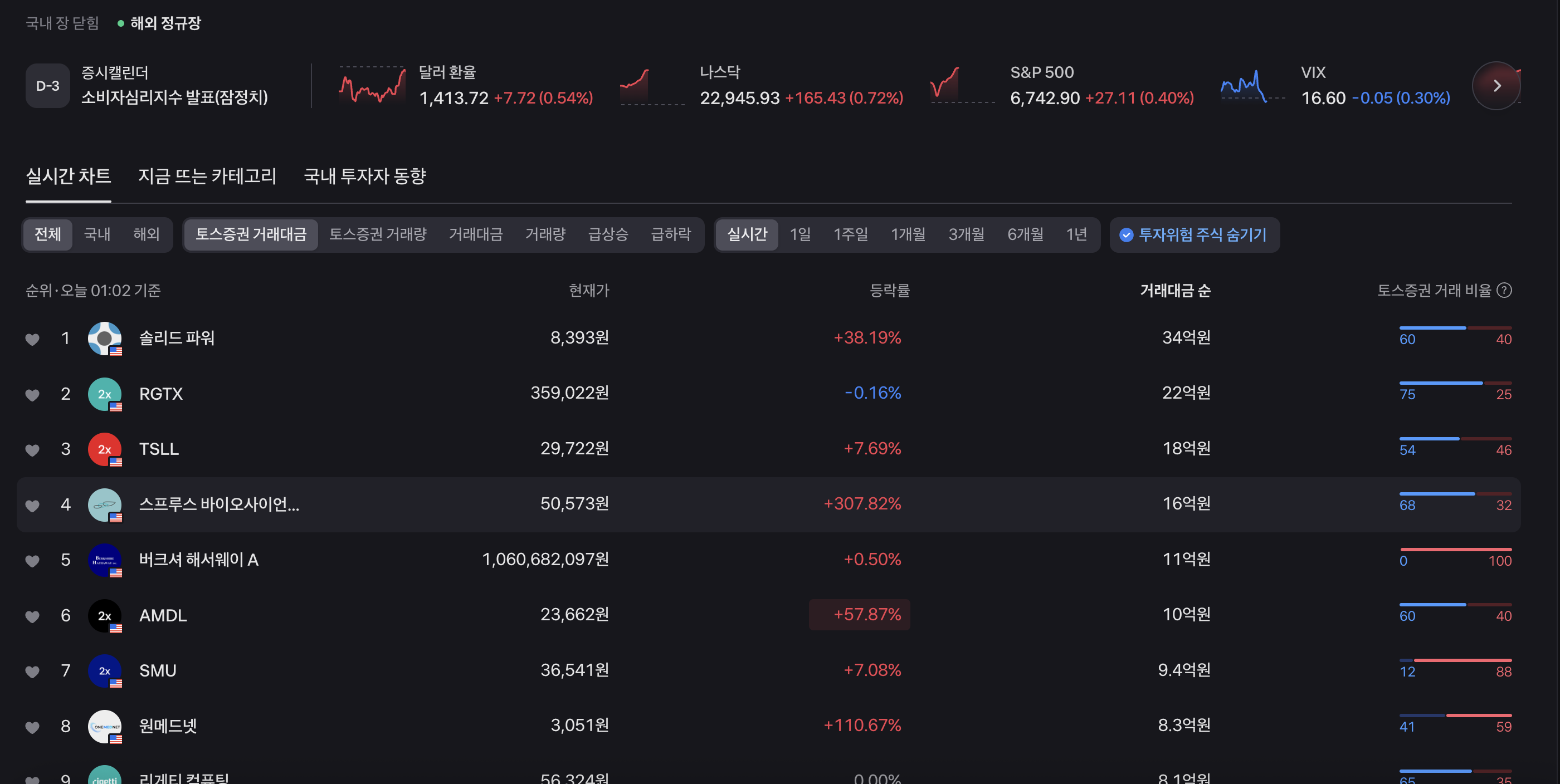 - 실시간 금융 데이터: 주요 글로벌 증시 지수, 환율, 원자재 가격 등을 실시간으로 제공하여 해외 주식 투자에 필요한 넓은 시야를 확보하게 합니다.